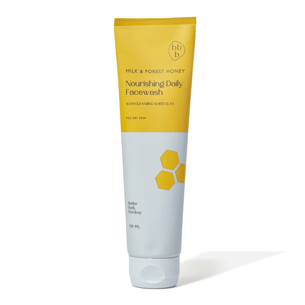 The Better Body Bombay Milk and Forest Honey Face Wash is like a gentle touch for your skin, formulated to nourish as it cleanses. Infused with exfoliating white clay, it deeply purifies pores, while the hydrating properties of milk ensure your skin remains soft and moisturised. Enriched with honey, it preserves the skin's natural texture and promotes a youthful radiance.