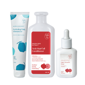 BBB Better Body Bombay Aloe Coconut Moisturizer & Onion Seed Extract Conditioner & Onion Seed Extract Hair Growth Elixir Pack of 3