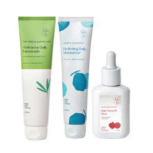 BBB Better Body Bombay Tea Tree Face wash & Aloe Coconut Moisturizer & Onion Seed Extract Hair Growth Elixir pack of 3