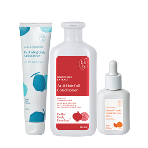BBB Better Body Bombay Aloe & Coconut Moisturizer with Onion seed extract conditioner and Blood Orange Facial Serum Pack of 3